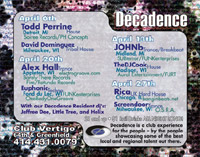Decadence Flyer - Flyer for an weekly club night in Milwaukee, WI. All work done in Photoshop. |