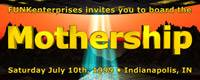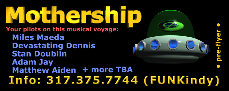 Mothership Pre-Flyer - Flyer for an underground music event held in Indianapolis, IN. 3D text and spaceship done in Infini-D, background in Bryce, text and compositing in Photoshop. |