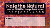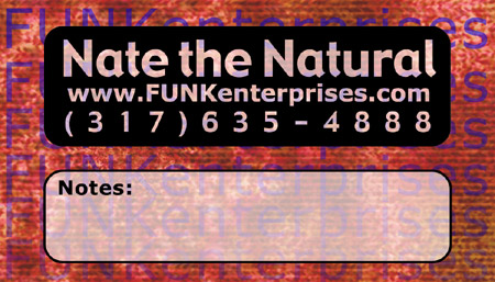 Nathan Kenelly Business Card - Business card for local Indianapolis DeeJay. Front 3D done in Infini-D, back text and compositing in Photoshop. |