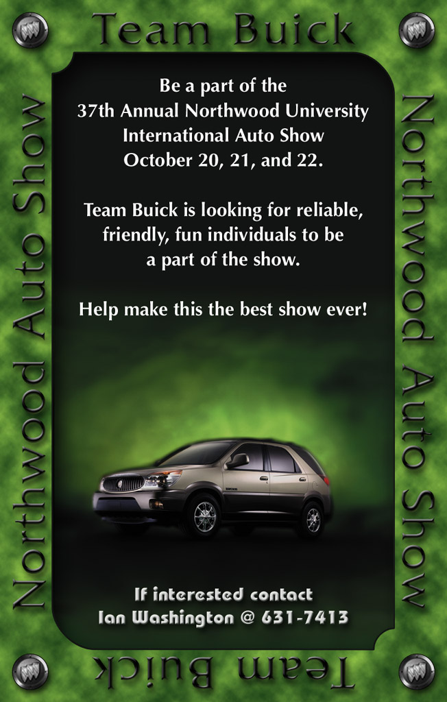 Team Buick Recruiting Poster - Recruiting poster for Northwood Institute's International Auto Show held in Midland, MI. All work done in Photoshop. |